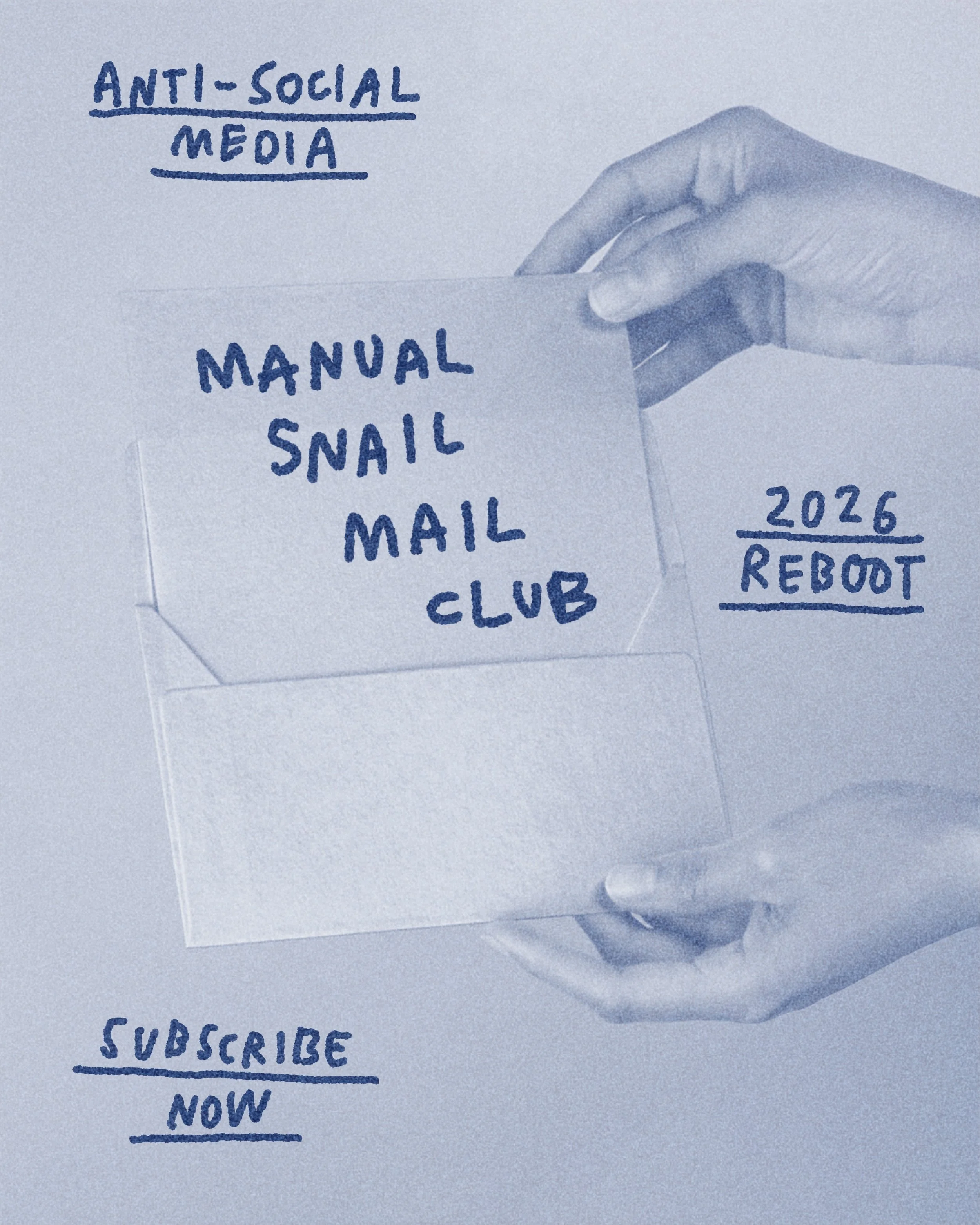 A few years ago Manual launched The Snail Mail Club as an experimental alternative to social media. Part art project, part direct-mail marketing; I wanted to explore what a post-social media world might look like for a small brand. I only ever shipped 3 mailings—it was not a resounding success—but I learned a lot from the experiment, so I’m relaunching in 2026.